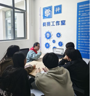 近期,中国大学生计算机设计大赛安徽省级赛正在如火如荼的进行中。我院老师们带领学生走进“一站式”学生社区——学科竞赛工作室,开展创作和指导活动。